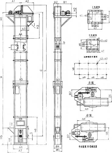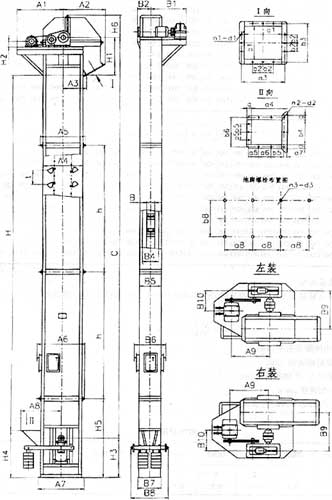 (2)TD型斗提機備有四種料斗:Q型(淺斗)、H型(弧底斗)、Zd型(中深斗)、Sd型(深斗)